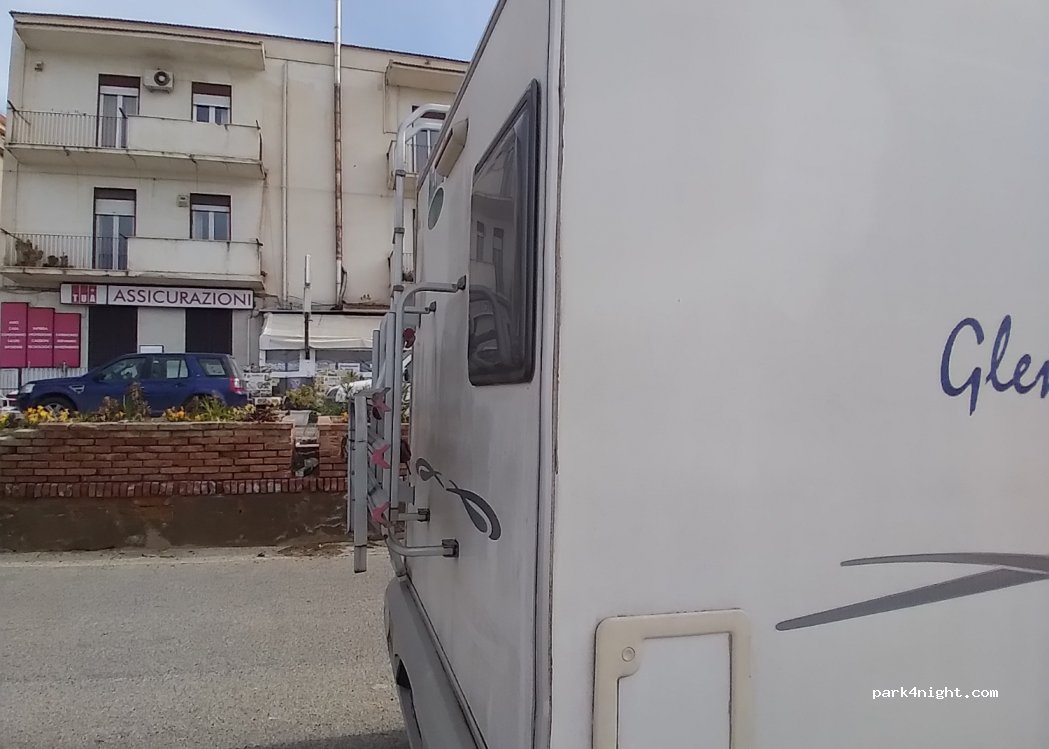 Leicht bergab gelegener Platz. Straße, wo es eine Bar, ein Restaurant und Häuser gibt. in der Seitenstraße parken. sehr ruhig