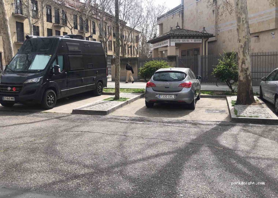 Parking pour camping-car ou petit camping-car. Pas de panneau d'interdiction. Trouver par chance. Nous avons passé 1 nuit très calme, en silence, en pleine semaine sainte. Rue cachée calme, peu d'espace, à pied du centre et des services.