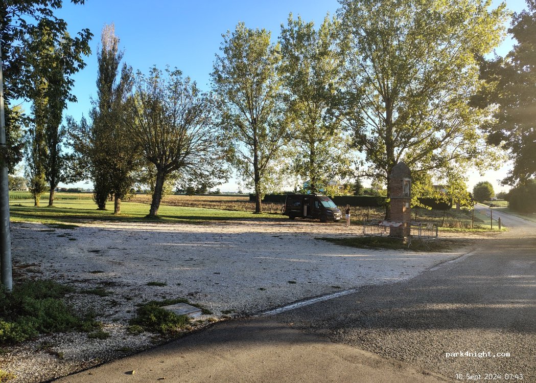 Standen hier im Sommer 2023 für 1 Nacht und haben über 1 Jahr später Post von der italienischen Behörde bekommen und mussten 70€ Strafe zahlen. Ein Anwohner hat wahrscheinlich das Auto fotografiert... also leider nicht zu empfehlen.