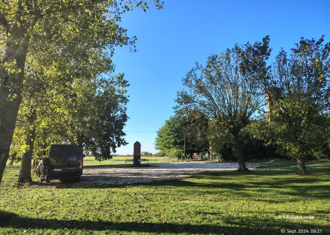 Sehr schöner und ruhiger Platz. Sauber, mit einer großen Wiese nebenan (alter Bolzplatz). Wasser ist verfügbar. Morgens läuten die Kirchenglocken - uns hat es nicht gestört.