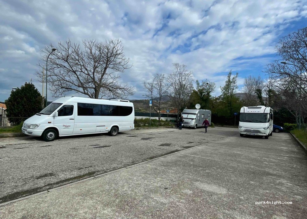 Convenient parking for day and night parking with area reserved for minibuses, very quiet, flat terrain. It is located behind the police building. We stopped here to break up the journey towards the Cilento park and its surroundings.