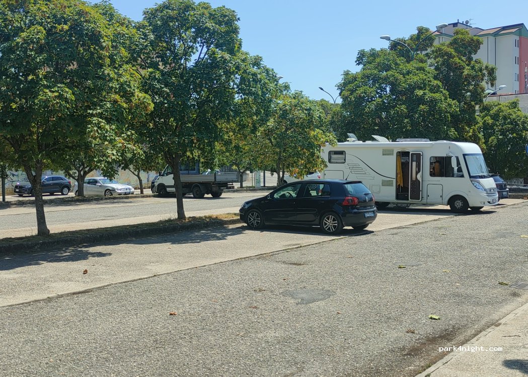 Comodo parcheggio per sosta diurna e notturna con zona riservata a minibus, molto silenzioso, terreno pianeggiante. Si trova alle spalle del palazzo della polizia. Abbiamo sostato qui per spezzare il viaggio verso il parco del Cilento e dintorni.