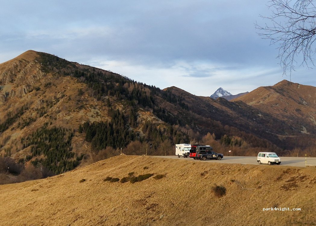 Parcheggio ampio asfaltato con vista panoramica quando il tempo lo permette. Da qui partono molti sentieri per i boschi della zona. Presente ristorante/bar che si occupa della gestione camper e dei servizi annessi. Cibo buono e casalingo, gestori molto disponibili. 8 € per 24 ore/10 € con corrente. Gratis il giovedì