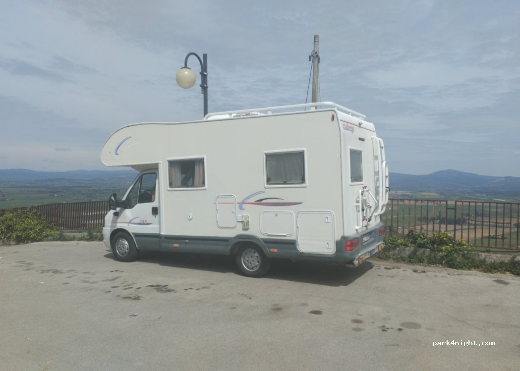 Parcheggio del paese, indicato, largo e panoramico. non spaventi la salita per arrivarci, si sale tranquillamente. fondo abbastanza livellato. nessun servizio. illuminato la notte .