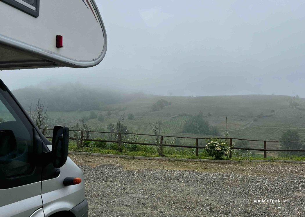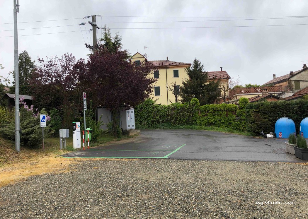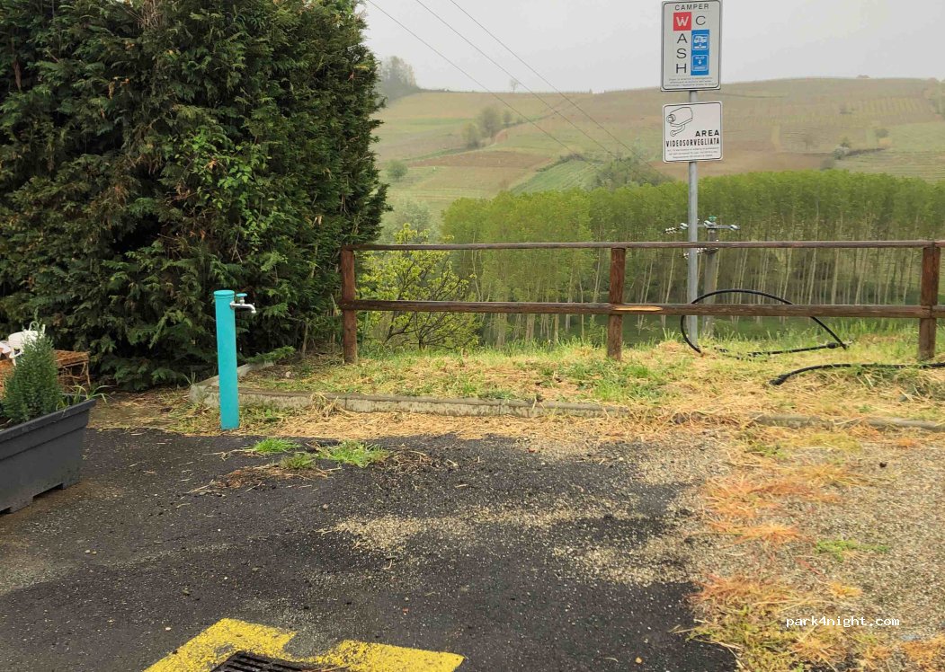 grazie al comune per questa area. c/s gratuito ci sono 5/6 posti disponibili di cui 2 sotto tettoia alcuni leggermente in pendenza risolvibile con cunei. Consiglio aperitivo al bar adiacente che offre anche un piccolo mini market. splendida vista sui colli del Monferrato. consigliato