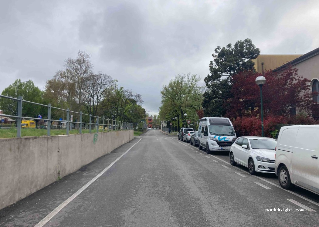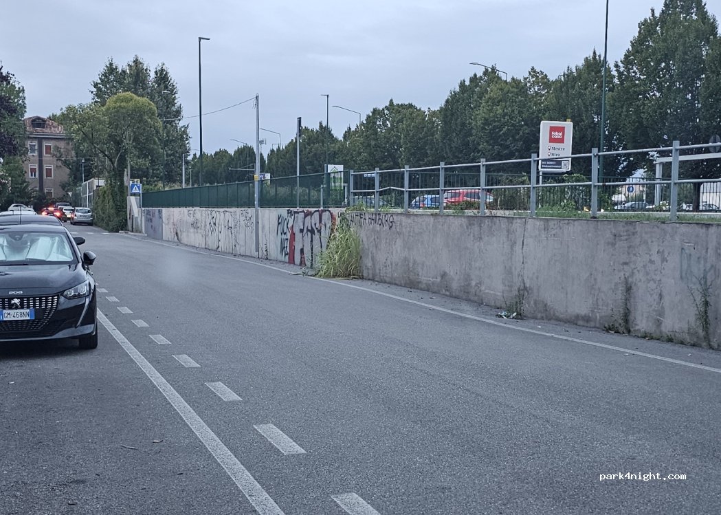 Nous avons laissé notre van ici pendant 3 jours afin de visiter Venise. Nous l’avons retrouvé entier. Le stationnement est gratuit et se trouve en face d’un arrêt de bus permettant d’aller directement à Venise.
