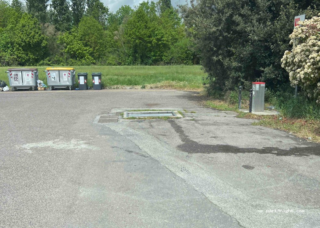 Perfetto per carico e carico acque, gratuito. Non ci sono piú i rom, è stato sgomberato ed è sempre vuoto perchè ci sono posti vicinity molto migliori, anch'io non ci ho dormito
