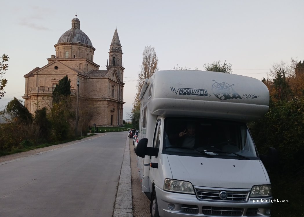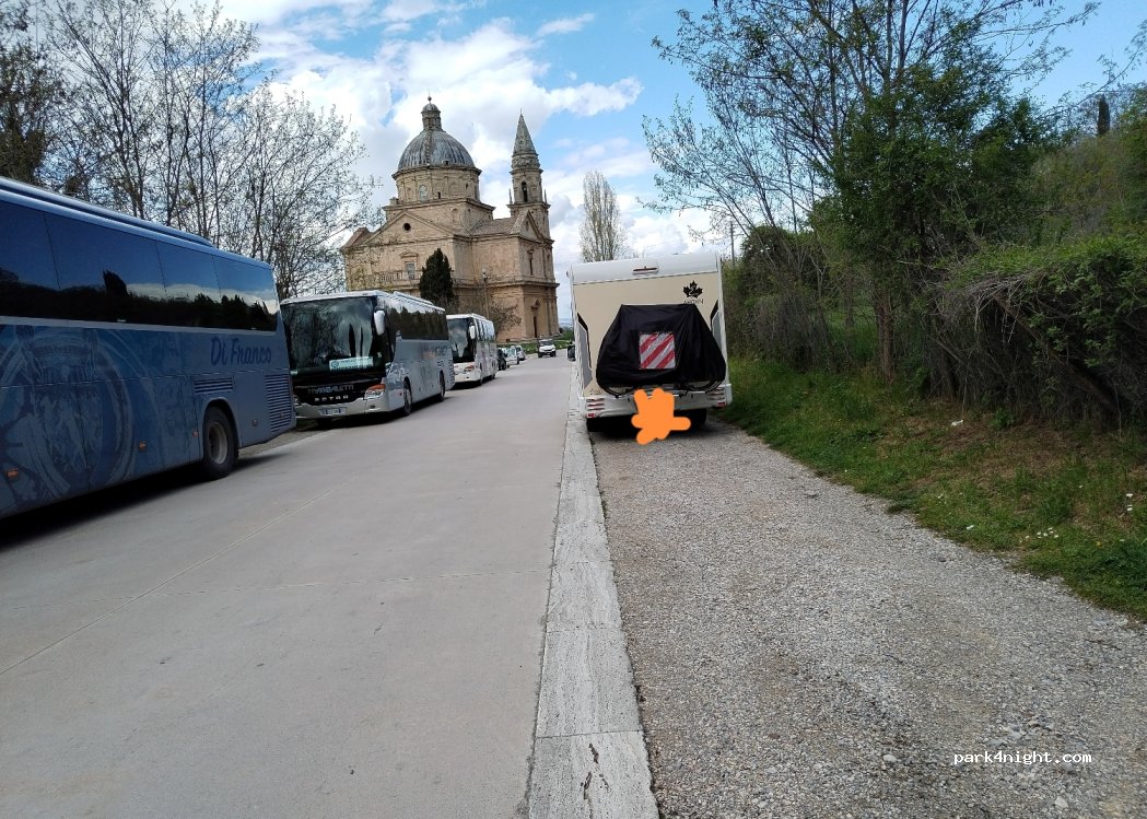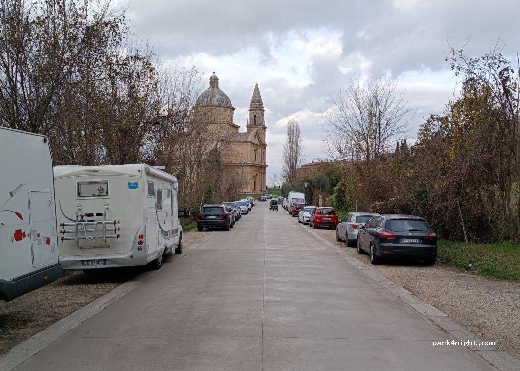 non è un parcheggio per camper ma per le auto, ci hanno fatto la multa perché è un monumento esistono però due parcheggi molto grandi (1 a pagamento e 1 gratuito, sono uno sopra all'altro) nell'area dell'autostazione proprio adibiti per noi camperisti state quindi molto attenti andate solo in quelli segnalati dal comune e non inventateli che fate la nostra stessafine