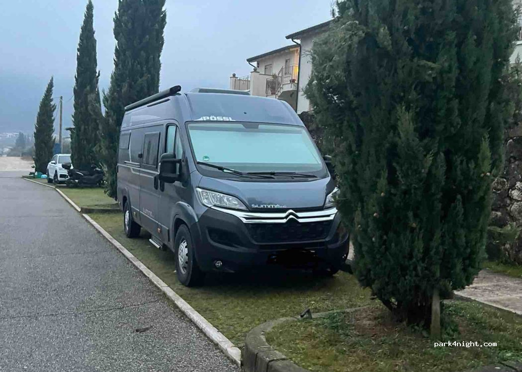 Ruhige, abgelegene Schotterstraße. Wir haben hier nachmittags geparkt und sind eine Nacht geblieben. (mit uns noch ein weiterer Camper) Einheimische Passanten haben uns nett gegrüßt, gab keine Probleme.