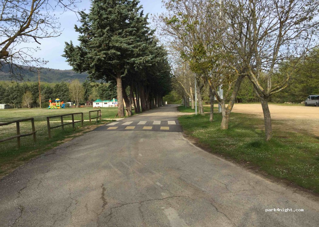 Ample parking near a restaurant with adjacent picnic area with barbecue points, toilets and showers. We stayed overnight and had an aperitif at the bar. Level parking, quiet night. Possibility of electricity connection, ask for information from the restaurant managers.