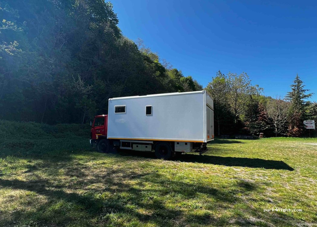 Level parking in the greenery. Quiet area adjacent to the lake. A good point to leave the camper to visit the medieval hamlet. Accessible by any means.