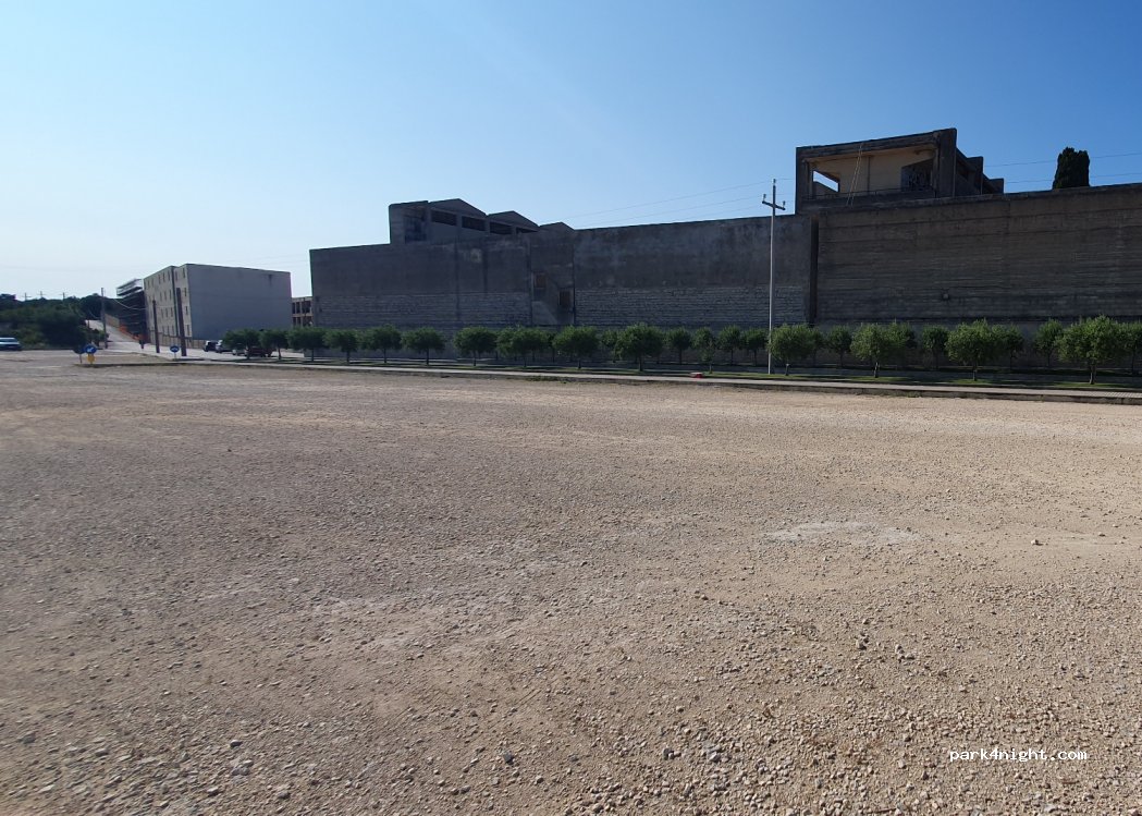 Large parking lot at the cemetery above Modica. Very clean, gravel surface.