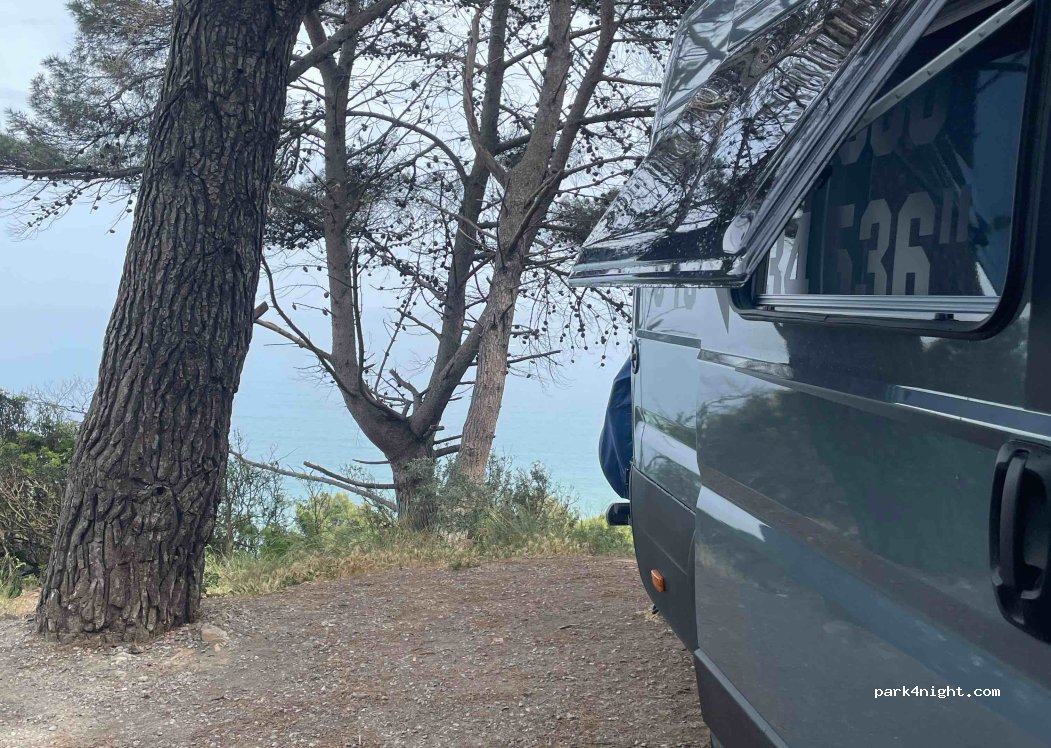 bellissimo posto per sostare abbiamo dormito una notte e ci siamo svegliati con un panorama bellissimo, al di sotto c'è una caletta molto bella parcheggio vicino alla strada ma poco trafficata di notte
