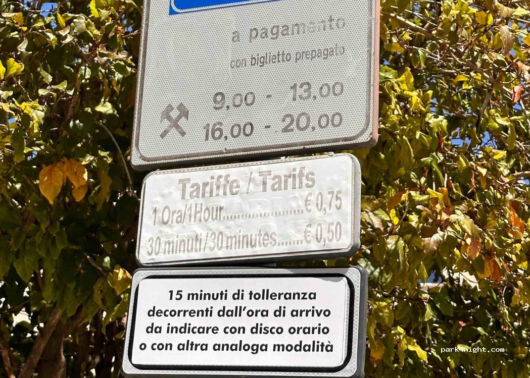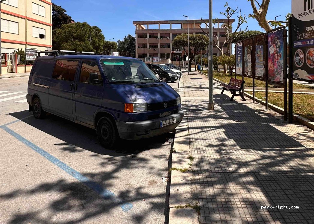 Central car park right in front of a school, perfect for visiting the city. No signs prohibiting overnight parking. At noon for 3 hours and at night from 8 p.m. to 9 a.m. free of charge.