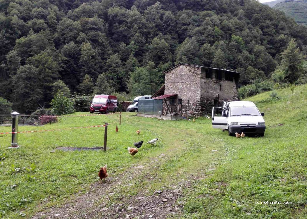 lieu magnifique dans la nature, entourés par la montagne, les poules et les oies. Gorgio le propriétaire est très sympa et accueillant. Ils nous a offert des œufs fraîchement récupérés. il y a de l'eau de source a disposition. c'est seulement 3€ la nuit et 2€ pour l'électricité. un paradis.