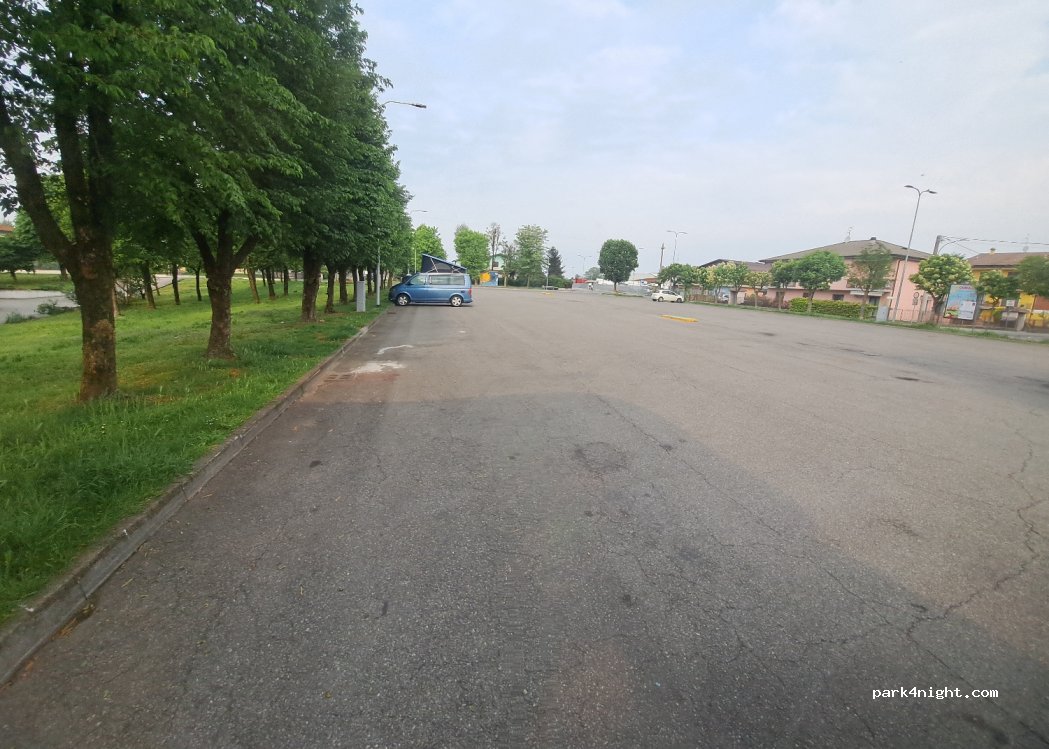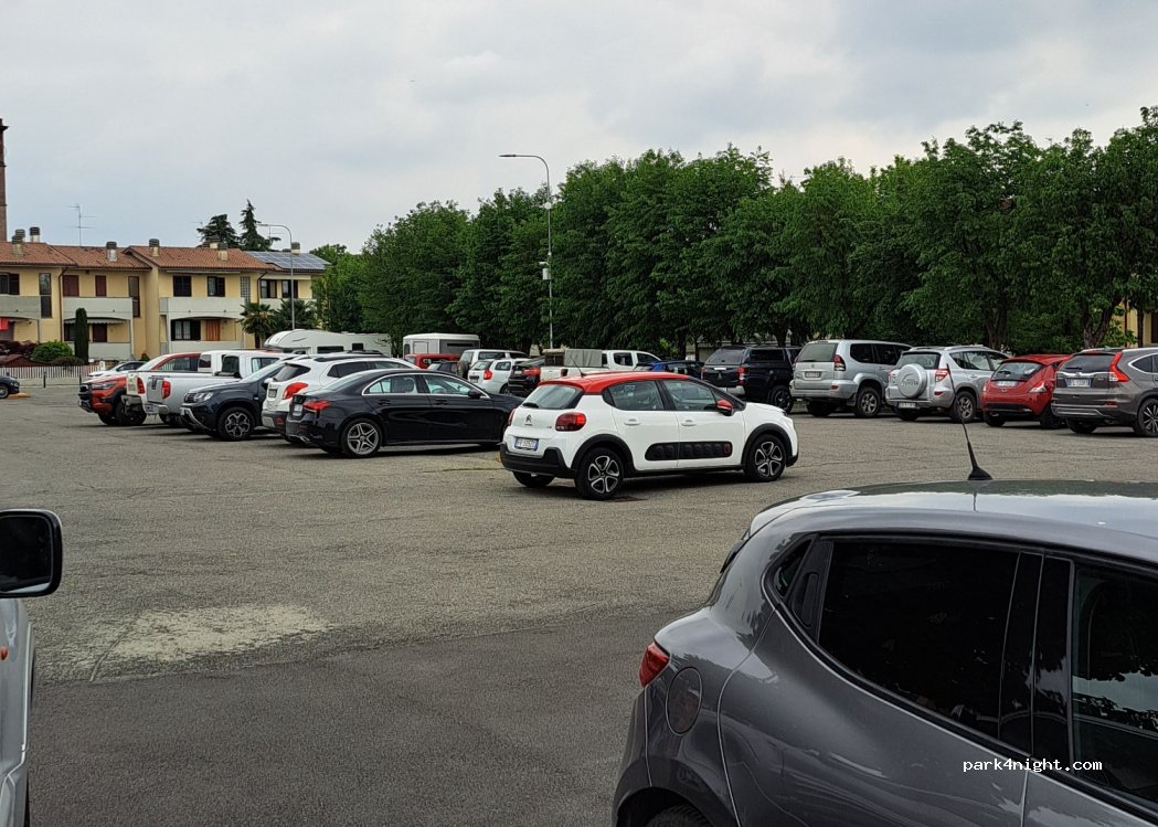 Parcheggio molto ampio adatto anche a mezzi di grandi dimensioni. Tranquillo e silenzioso la notte. Divieto di sosta il martedì per mercato.