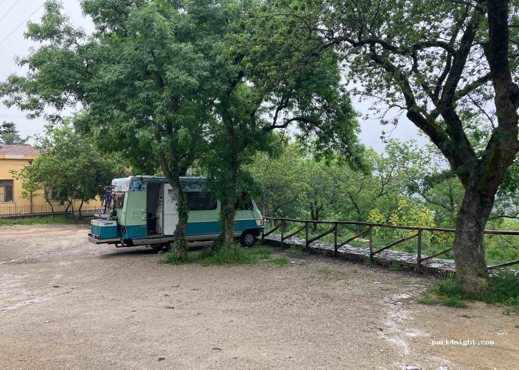 Parking in front of the entrance to the RNO Bosco Ficuzza, a stone's throw from the Real Casina di Caccia. Mostly flat area, very quiet in the evening, without any prohibitions. Had a very quiet night.