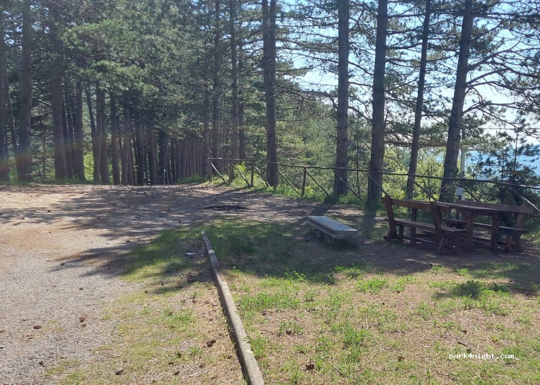 Posto ombreggiato e tranquillo anche se vicino alla strada su ghiaia vicino a un albergo ristorante. 2 tavoli picnic a disposizione. Non vedo nessun divieto