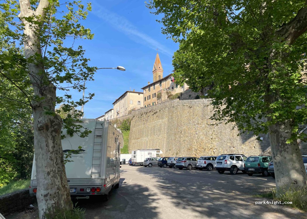 Laterina: ample parking under the walls, convenient for visiting the town, with drinking water dispenser