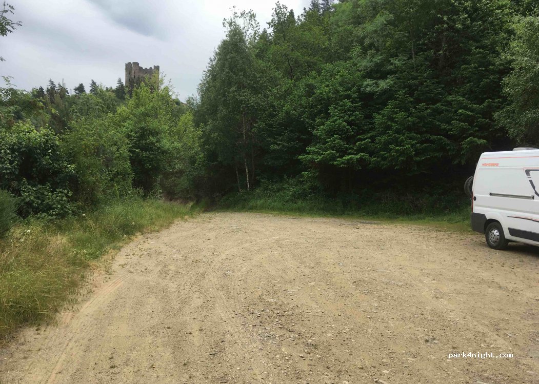 petit parking pratique pour se balader jusqu'au château. nuit calme mais l'endroit m'a semblé un peu glauque. pour la baignade, a revoir l'eau est très boueuse a cet endroit, il y a des spots plus pratique pour ça.