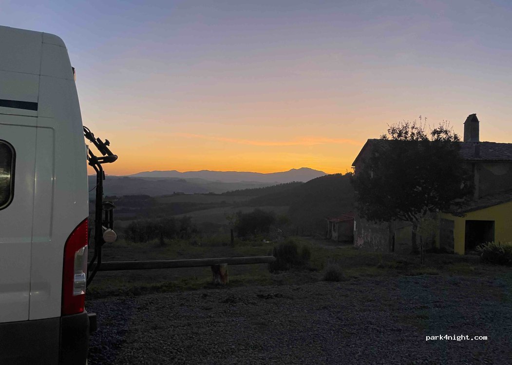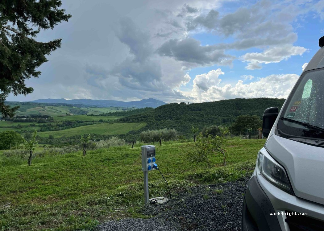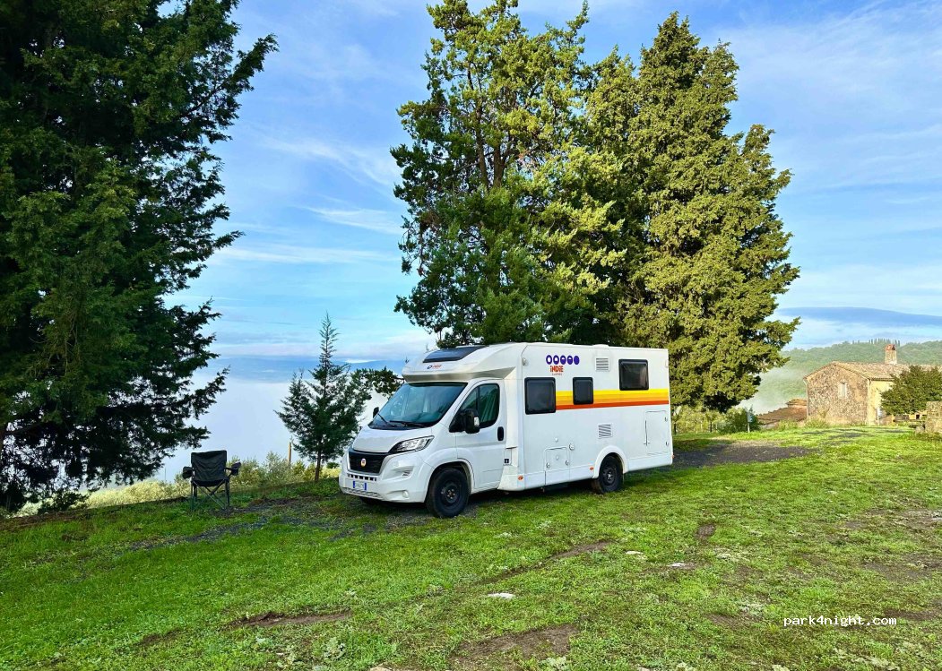 Da questa area potrete godere di un panorama fantastico che assolutamente da il suo meglio al tramonto e all’alba ! Avrete tutti i servizi “tecnici” (no bagni) tutti ben nascosti nel area per non deturpare il panorama. ATTENZIONE salita che potrebbe dare filo da torcere ai meno esperti (una certa pendenza su strada sterrata) io sono salito con un mansardato 7M. Provate l’agriturismo adiacente!