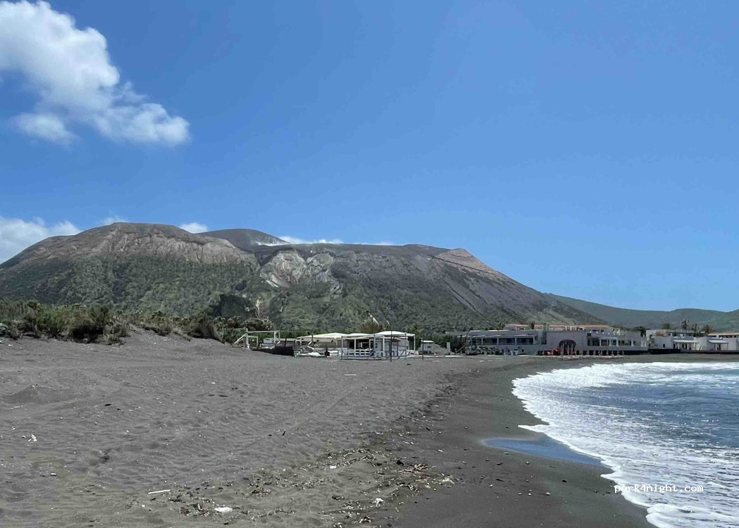 Campingplatz in idealer Lage an der Baia Negra (hübsche Bucht aus schwarzem Sand) mit herrlichem Blick auf den Vulkan.