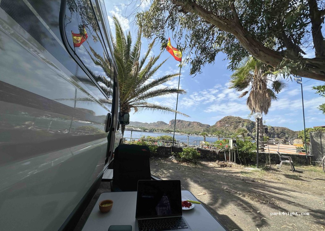 Angenehm ruhiger Platz mit tollem Blick auf Bucht und Vulkan. Große Stellplätze unter alten Bäumen. Warm duschen dank Solartherme. Freundliche Betreiber, Hundewiese direkt gegenüber. Läden und Restaurants ca. 800 m entfernt. Sauber, keine Müllprobleme. Wir haben uns sehr wohlgefühlt!
