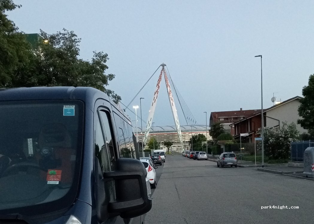 Buen sitio para aparcar e ir a ver el Allianz Stadium. Mucho sitio para aparcar la autocaravana o la camper. Sin servicios pero hay un parque con fuente muy bonito. Tranquilo y seguro.