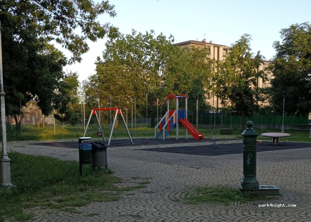 Playground with dog area and two tables right behind the Allianz stadium and Juventus museum. There is a water fountain. There is parking right in front of the oratory. A few meters away there is a MC Donald and a shopping center. Conad refueling pump with excellent prices.