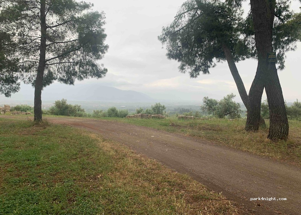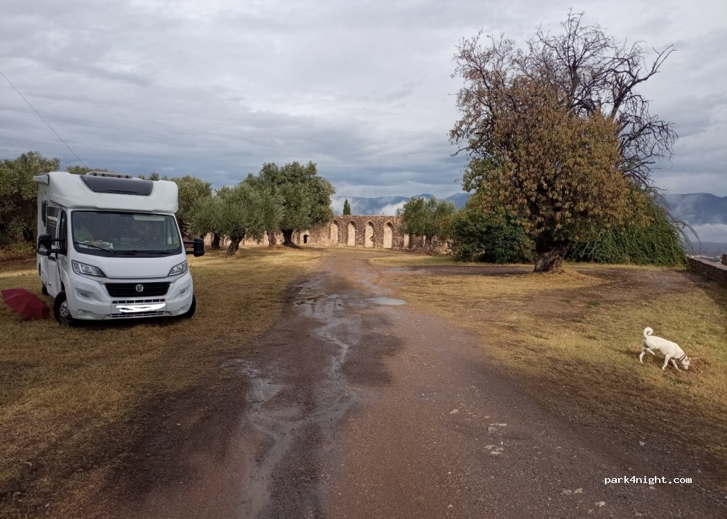rustige schaduwrijke plaats met mooi panoramisch uitzicht op Kalamata. wij stonden hier 2 dagen alleen, plaatselijke bewoners komen regelmatig kijkje nemen. minimarkt in het dorp.