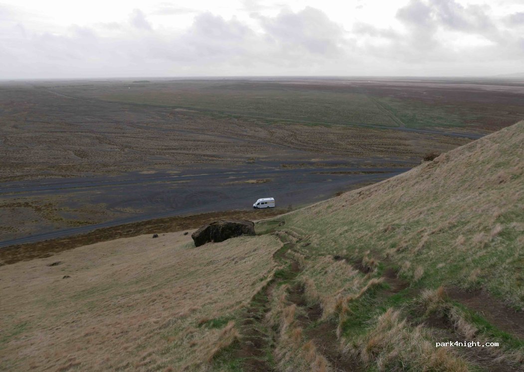 Lieu accessible en camping-car suite à une route en gravier. Lieu calme et protégé du vent. Permet de rejoindre Seljalandafoss facilement. Petit randonnée de 20 min pour monter au sommet et avoir une vue magnifique sur l’horizon.