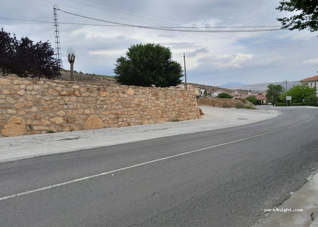 El otro día fuimos a dormir justo a esa calle y nos tuvimos que ir. Es una zona conflictiva y en cuestión de 15 min que tardamos en prepararnos para dormir pasaron más de 20 coches con la música a toda pastilla, demasiado rápido y de los cuales la mayoría nos gritaba que nos fuéramos, que no éramos bienvenidos. Al lado es donde se hace botellón. Aparcamos en una calle del pueblo y dormimos genial
