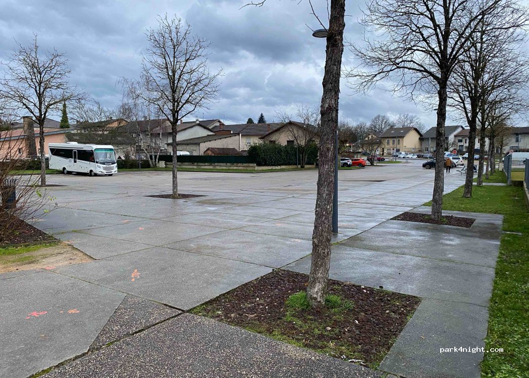 Grand parking idéal pour passer la nuit. Sans service, mais commerces tout autour. Beau cadre.