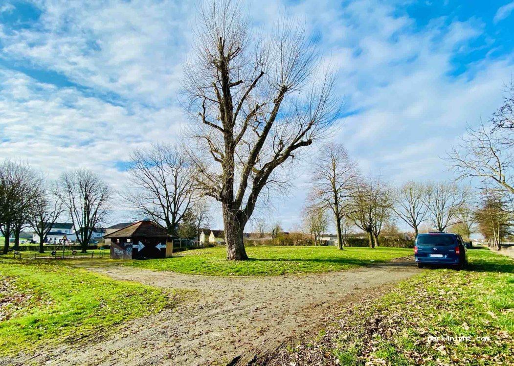 Petit parking à une petite cabane de barbecue. 1 emplacement pour fourgon, plutôt pour max 6m. Point de départ de la piste cyclable Hessen. Super calme à condition qu'il n'y ait pas de fêtes.