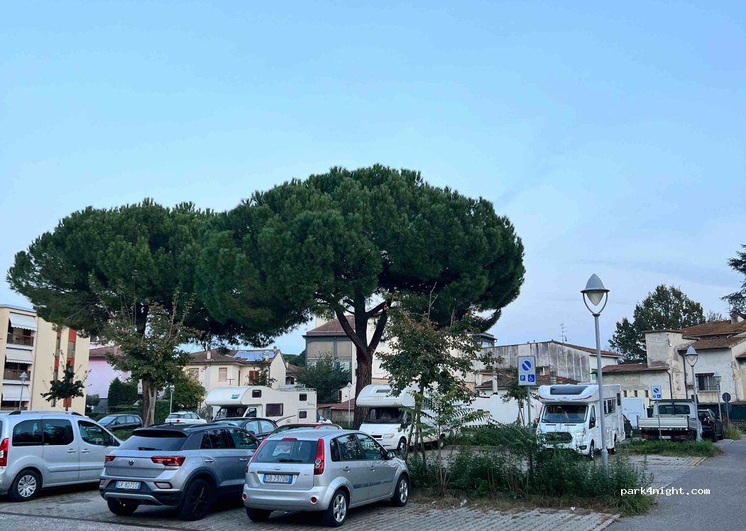 Stationnement gratuit sur asphalte, sans services. pratique pour visiter Empoli. endroit calme pour s'arrêter jour et nuit. à côté d'une zone de promenade pour chiens.