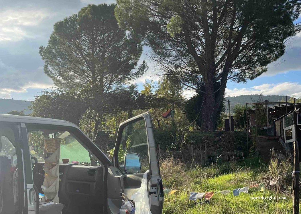 I had a very nice stay with the family and the young volunteers, I even got invited for dinner! The current contribution is 10€ but you ought to give more. There is water (tasty) right nex to the van place, you need a longer cord for electricity. There are more Eco communities in the area, just ask the owners :)