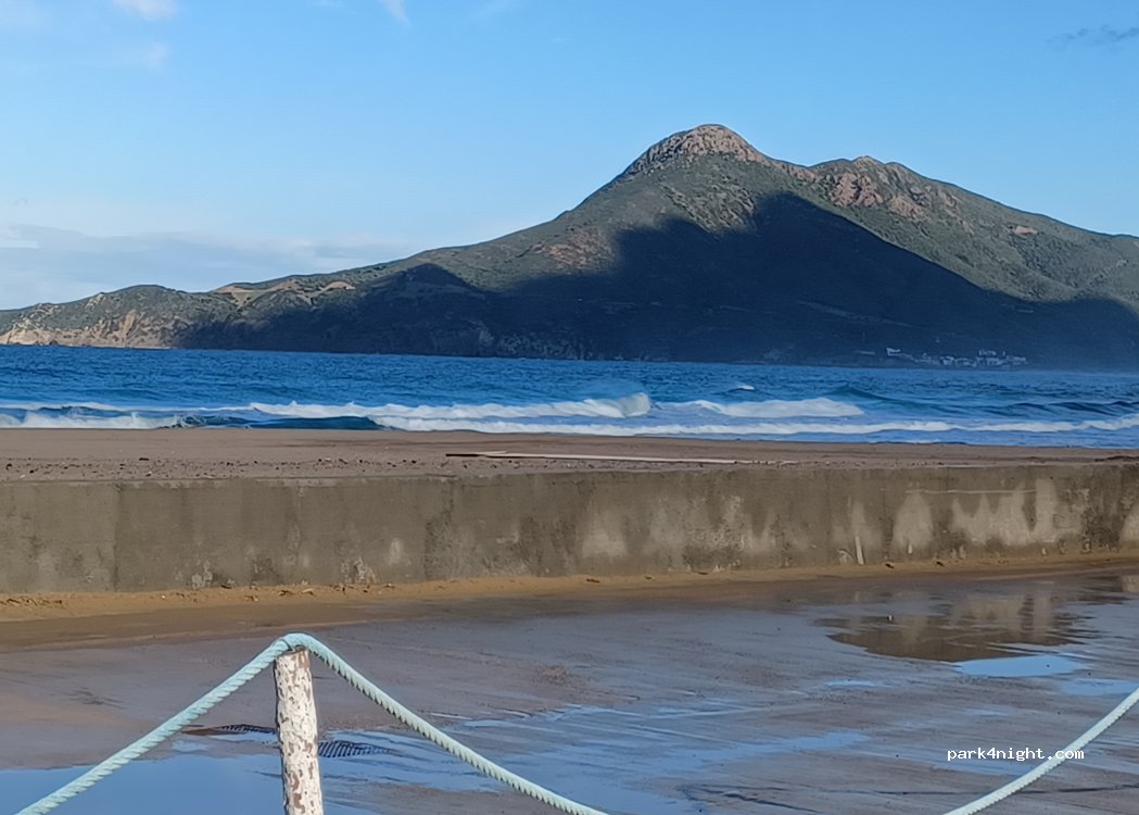 Ein Stellplatz auf einer großen betonierten Fläche in voller Sonne mit teilweisem Blick auf das Meer. Die Wohnmobile sind in 4 Reihen aufgereiht. Sandstrand im Bau und hohe Wellen. Die Toiletten sind sauber aber alt. Die Grauwasser-Entsorgungschächte liegen in der Nähe der Stellplätze, somit stinkt es dort sehr stark. Es sind nicht genug Stromanschlüsse vorhanden, man bezahlt trotzdem 20 € für die Nacht. Sehr laute Musik bis in die frühen Morgenstunden. Der Platz ist nicht überwacht. Nach Aussage eines Angestellten ist der Platz nur ein Provisorium.