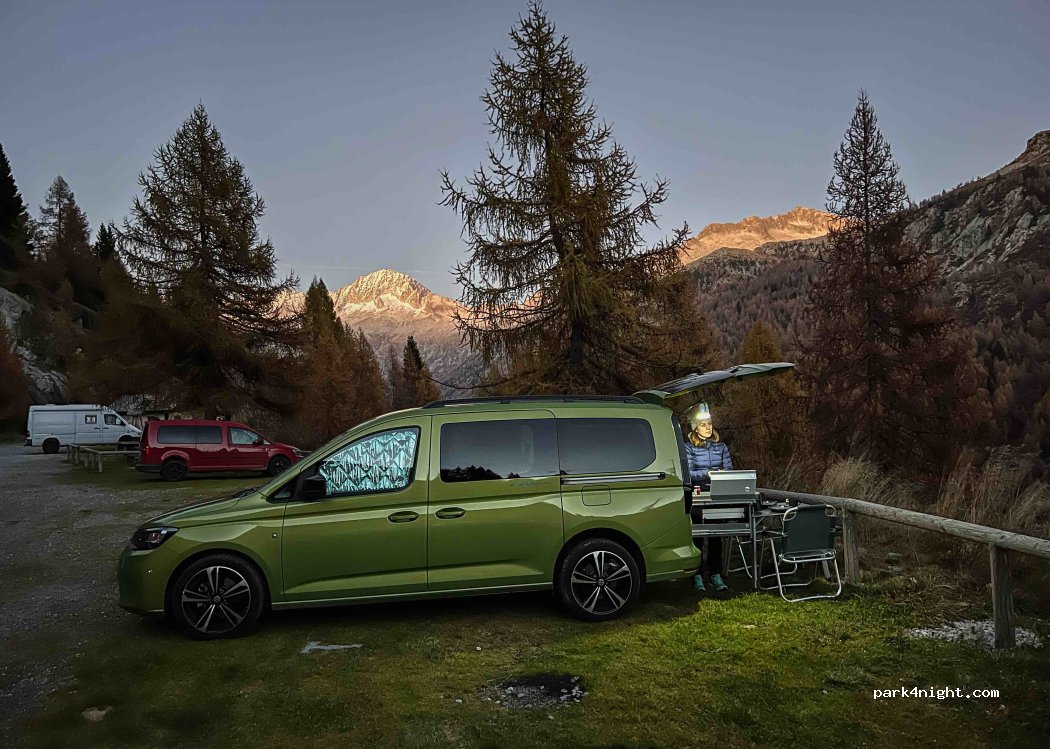 A pagamento dalle ore 7.00 alle 16.00. Auto 6€, camper 15€ il primo giorno. Dal 2° giorno 3€. Nel weekend molto pieno, ma generalmente un posto si trova. Bagni chiusi dal tardo pomeriggio alla mattina seguente. C'è un rubinetto all'aperto. I cartelli dicono acqua non potabile,perché non viene dall'acquedotto, ma dalle fonti dei ghiacciai lì sopra, quindi è pulita. Noi l'abbiamo bevuta.