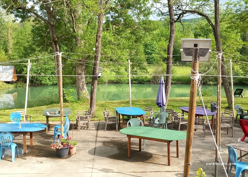 Aire de stationnement camping-car gratuite, sans limite de hauteur. Espace détente, à proximité de la rivière, présence du restaurant. Ouvert du 1/6 au 31/10 tous les jours.