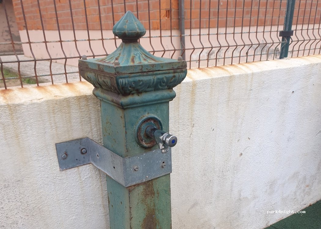 La fontana è dentro ad un parco giochi recintato in pieno paese, non comodissimo fermarsi per fare il carico, bisogna avere un tubo lungo almeno 20m.
