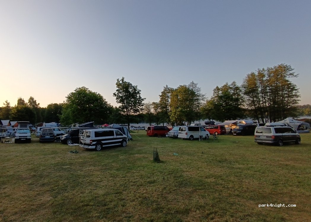 Schöner Platz an einem großen See umgeben von viel Natur. Wir haben mit 2 Erwachsenen + Van rund 10€ für 1 Nacht bezahlt. Tretbootverleih, Wakeboard-Anlage, geräumige Wiese, die sich Vans und Zelte teilen, Freie Platzwahl, kleiner Spielplatz, Restaurant und Kiosk, freundlicher Empfang, saubere moderne Sanitäranlagen.