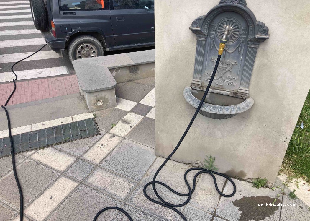 Fontaine à eau haute pression facile d'accès. Grand espace ouvert pour s'arrêter et charger