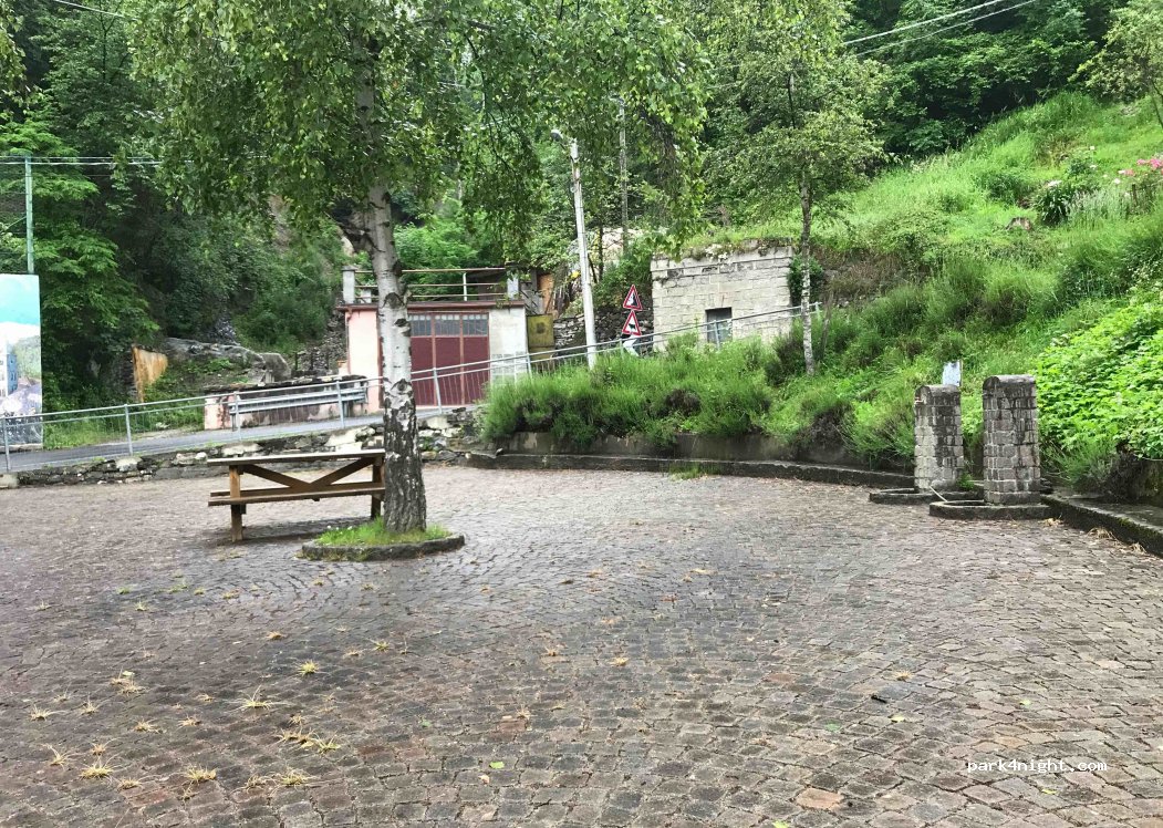 Parcheggio all'ingresso del paese con tavolo da picnic e acqua partenza dall'escursione un buon ristorante le cado aperto venerdì sabato e domenica consiglio area rifiuti fornire presa terreno leggermente inclinato