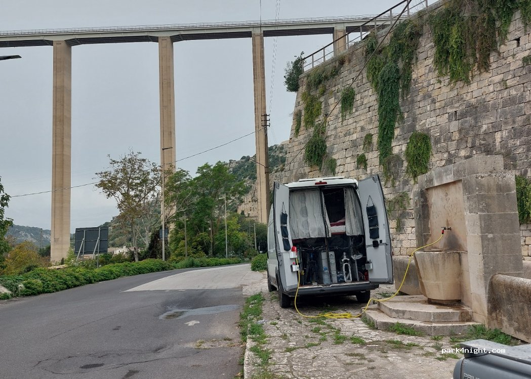 buon punto acqua... sufficiente portata del rubinetto,comodo il parcheggio... siamo stati disturbati da un ragazzo in stato in apparenza un po'confusionale,non so se causa stupefacenti o problemi psichici...per un attimo temuto il peggio...poi se n'è andato...fate attenzione