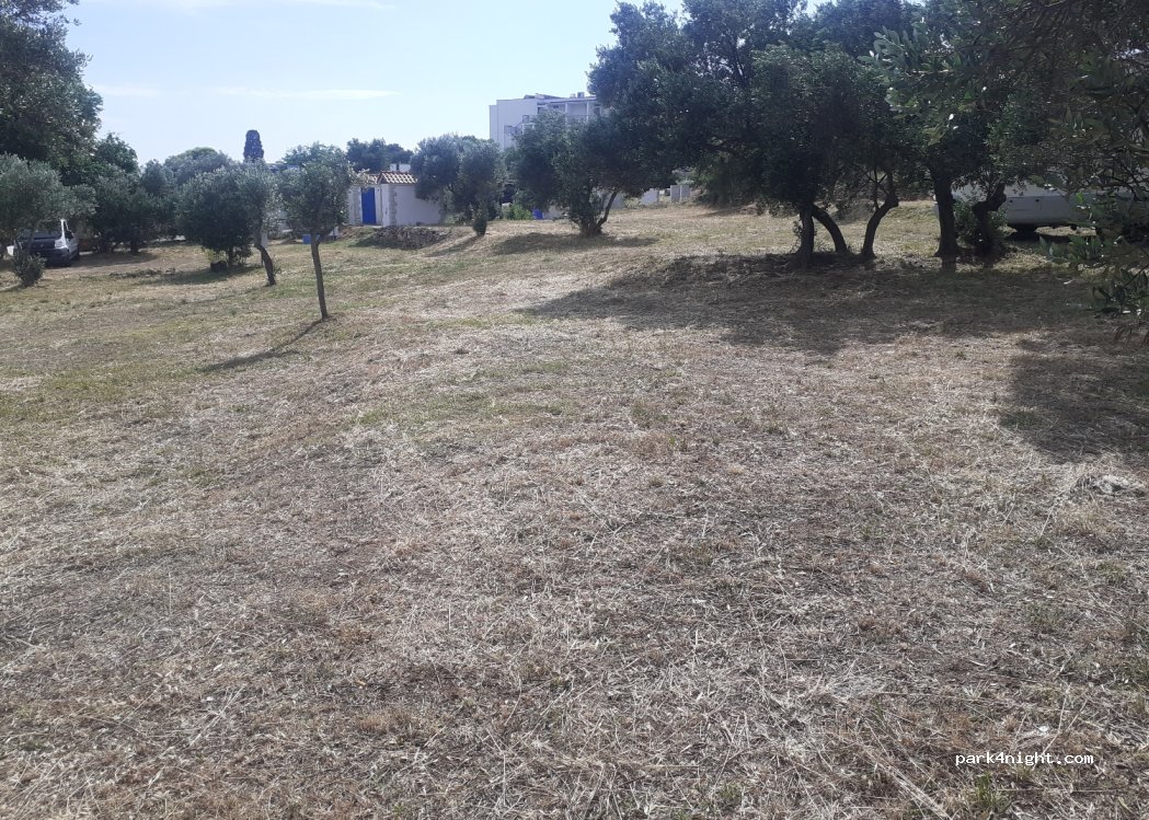 aire dans une ancienne oliveraie. Agréable. On s installe ou l on veut. Propriétaire sympathique. payé 23 € pour 2 personnes et un van. Très belle plage à 5mn.