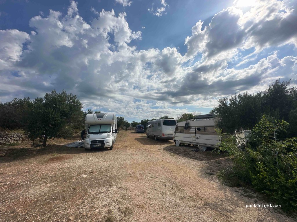 superbe endroit. très proche de la mer et du centre de murter ( joli petit village avec ses commerces et restaurants) on ce place où l'on veut. possibilité de vidanger les WC et eau grise et ce charger en eau .. superbe pour le prix nous y sommes restés deux nuits ..