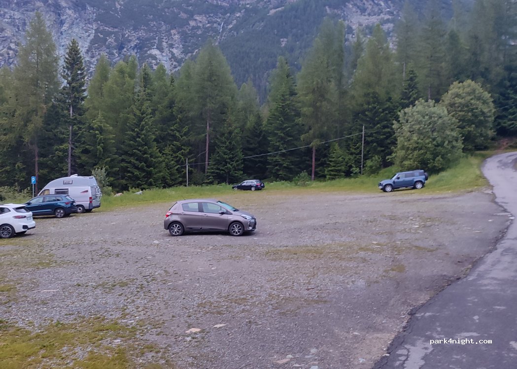 Parcheggio sterrato vicino ad un piccolo agglomerato di case. Non c’è alcun servizio salvo una fontanella ad un centinaio di metri dal parcheggio. La strada per salire è molto stretta e ripida. La vista è bellissima e c’è molto silenzio sia di giorno che di notte. Da qui partono molte escursioni per il lago Palù.