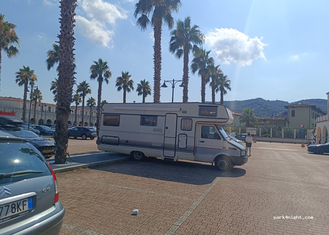 Great parking lot near Italmark supermarket. 2 hours free parking if you shop there but don't forget to validate the parking ticket at the counter/cassa before you leave. We shoped for an hour and the second one we used it to explore the city by bike, a quick tour over the seaport.