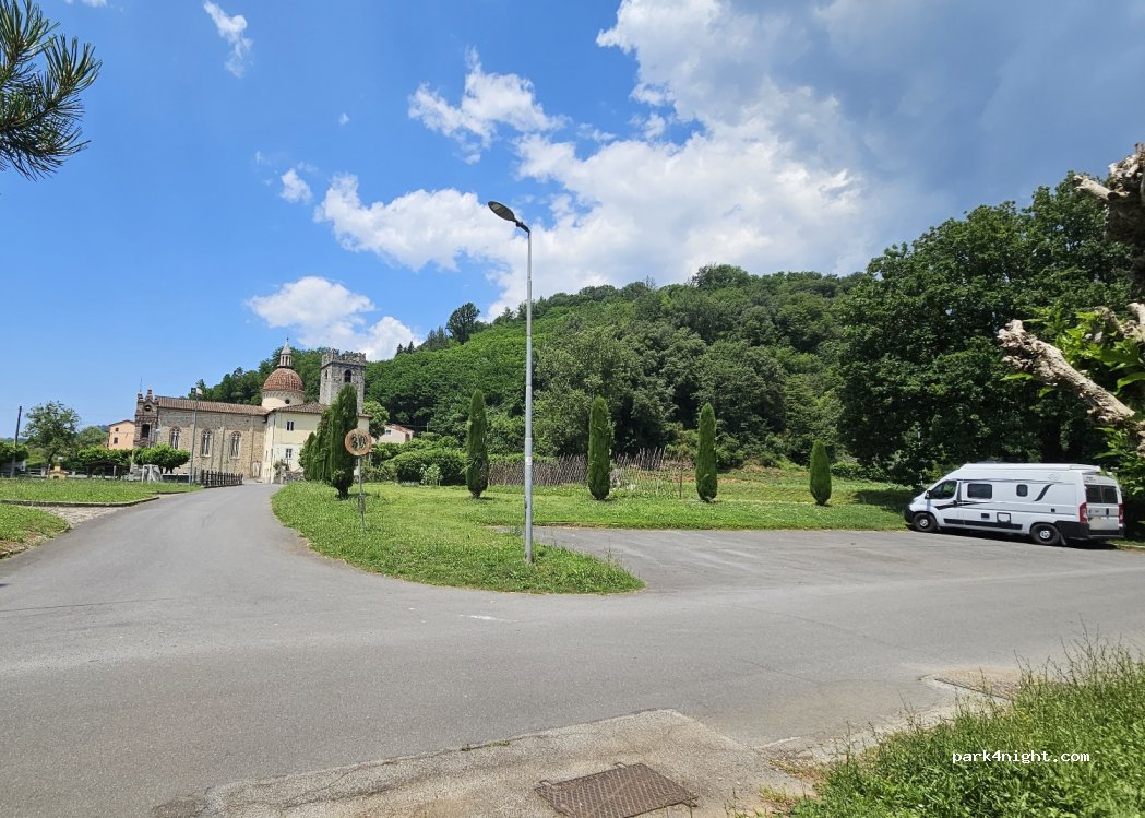 Zwischenstopp für eine Nacht auf dem Weg nach Lucca. Sehr ruhiger Platz mit Zugang zu einem Wasserbrunnen. Wir haben nicht direkt hier, sondern ca. 100 m weiter vor dem Friedhof übernachtet, da der Parkplatz dort etwas ebener ist. Für eine Nacht absolut empfehlenswert.