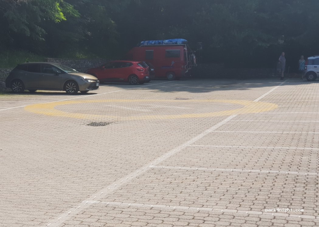 Ampio ed ombreggiato parcheggio nei pressi del cimitero. Piatto.